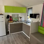 The kitchen amenities at the holiday home feature a microwave, an electric kettle, and a fridge, provided in an outdoor dining area. The nearest bus stop, Camping Le Planginot, is just 500 metres away. Bicycles are provided for rent, while a sauna are available in the spa section.