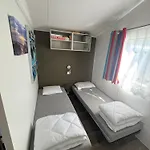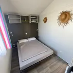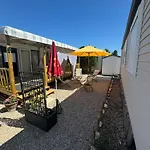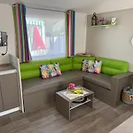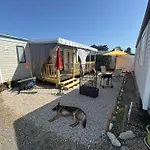 Les équipements de cuisine de Mobile Home 198 comprennent un micro-ondes, une bouilloire électrique et de la vaisselle, fournis dans un coin repas extérieur. Cette propriété est également près de Camping Le Planginot.